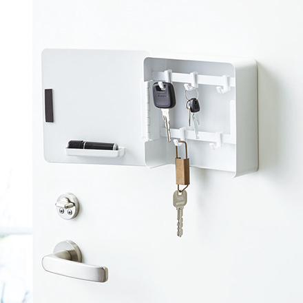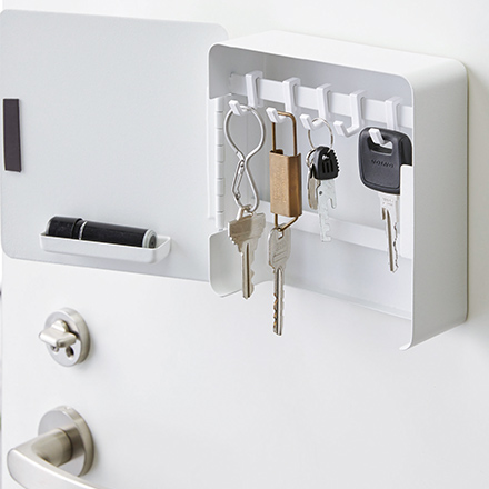 便利な2段式の印鑑トレー付きのキーフック収納。