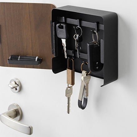 便利な2段式の印鑑トレー付きのキーフック収納。