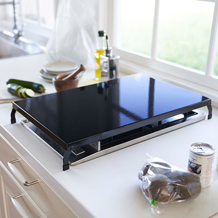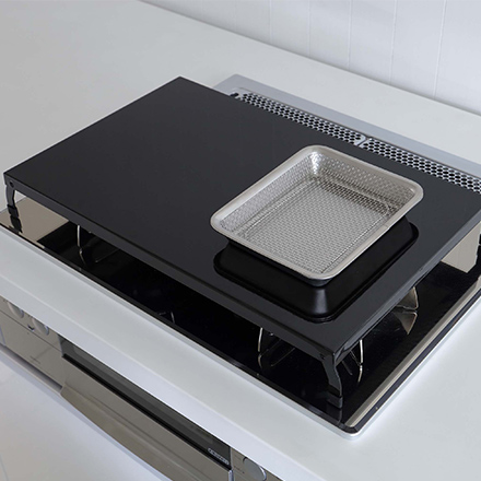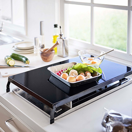 ワイドサイズだから調理中の食材やトレー、ボウルなどを広々置けます。