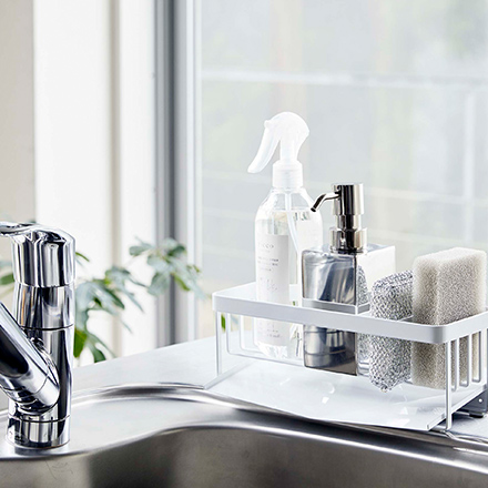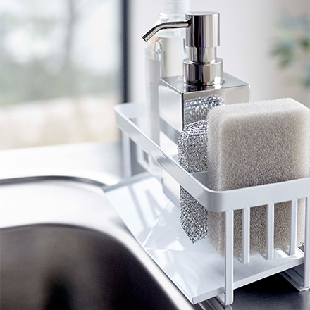tower タワー 水が流れるスポンジ&ボトルホルダー ホワイト 5016