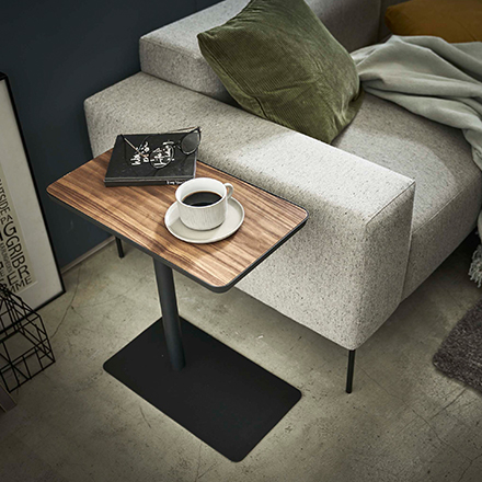 ソファの下やベッド下の隙間に土台プレートを差し込むことで、テーブルを体の近くまで引き寄せて使えます。深く腰掛けたままでも飲み物やスマホに手が届きやすく、リラックスタイムを快適に。