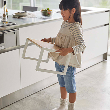 ・安定感がありお子様が両足をしっかり乗せて作業ができます。