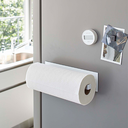 マグネットが付くスチール壁面に簡単取り付けのキッチンペーパーホルダー。