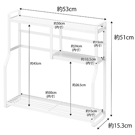 | その他詳細 1 | 【内寸】 上段棚:幅50×奥行11cm・中段棚:幅24×奥行10.5×高さ15cm 下段棚:幅50×奥行15×高さ26.5cm(上段棚までの高さ約43cm) |
