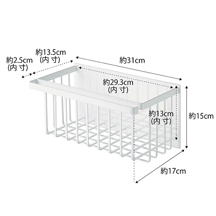 | サイズ/寸法 | 本体:約幅31X奥行17X高さ15cm バスケット:約幅29.3cm×奥行13.5cm×高さ13cm バー:約幅29.3cm×奥行2.5cm |