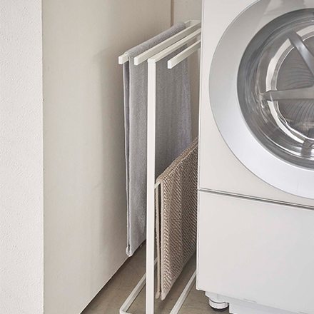 下のバーにはバスマットも干すことができます。場所をとらないスリムな設計。
