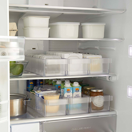 奥行がワイドな冷蔵庫中収納ケースシリーズ。