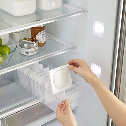 ・立てて並べて収納することで、納豆や豆腐パックの賞味期限が一目で分かります。