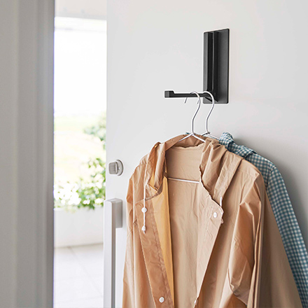 ・マグネットのつく玄関扉に設置して、濡れたレインコートや傘などを乾かす時の一時置きに便利です。