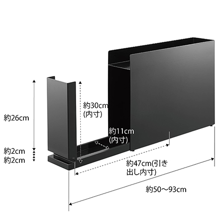 | サイズ/寸法 | 約W12.5×D50~93×H36.7cm 内寸: 引き出し:約W11×D47×H30cm 上部トレー:約W12×D49.5×H5.5cm |