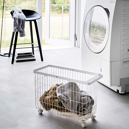 tower タワー ランドリーバスケット キャスター付 ワイド&ロー ホワイト 6627