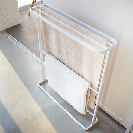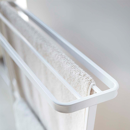 どんな空間にもマッチする省スペース設計のスリムなバスタオルハンガーです。