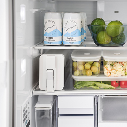 冷蔵庫のドアポケットにも収まる設計です。便利なロック機能付き。
