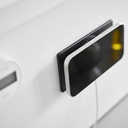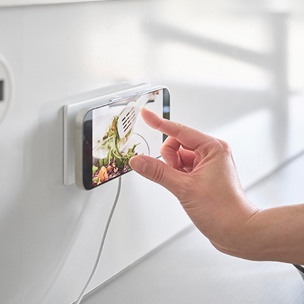 ・ホルダー部にはめ込み、磁力でスマートフォンを取り付けるだけで、充電しながら収納できます。