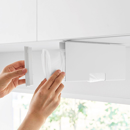 吊り下げ戸棚に差し込むだけで簡単に浮かせて設置できるポリ袋収納ホルダー Mサイズ