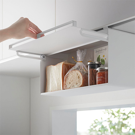 パンや調味料をすっきり収納でき、キッチン周りを広く使えます。