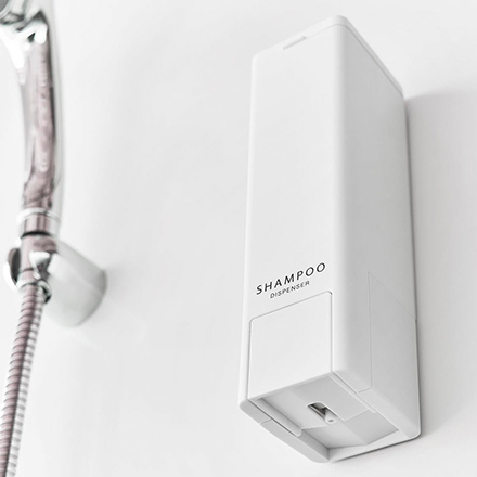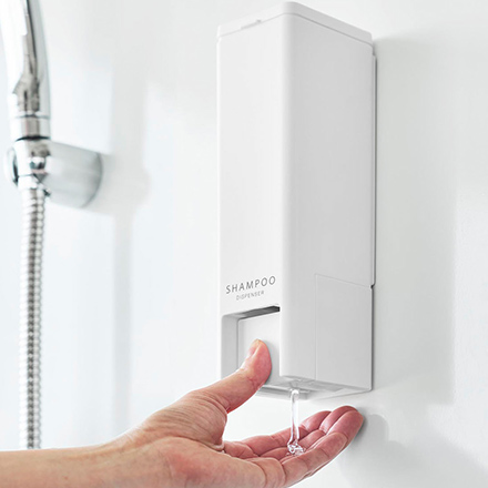 片手で押すだけで、下から出せるシャンプー用のディスペンサーです。