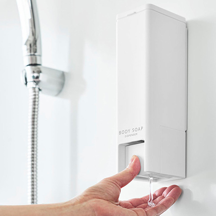 片手で押すだけで、下から出せるボディーソープ用のディスペンサーです。