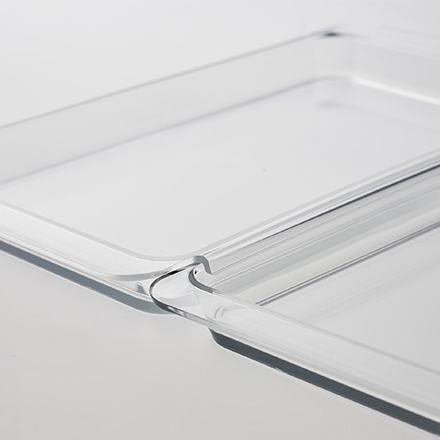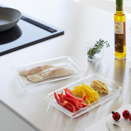 ガラスの様に透明で色移りしにくく、軽量で耐熱性に優れた日本製の素材を使用。