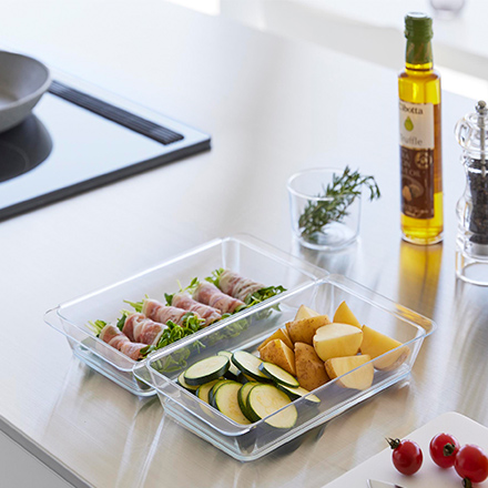 電子レンジ対応連結できる洗いやすい下ごしらえ調理トレー タワー 深型 2個組 クリア