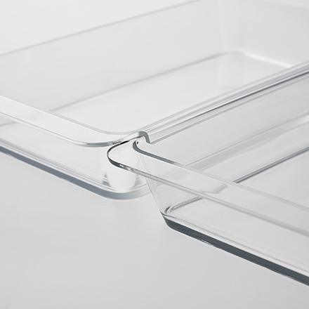 トレーを並べて置いても幅約28cm。狭い作業台にもスリムに収まります。
