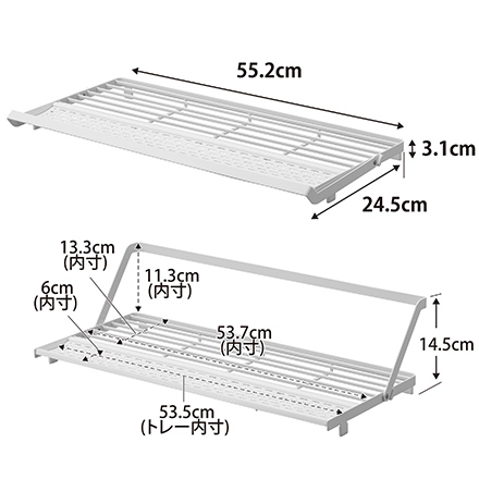 | その他詳細 1 | 【内寸サイズ】 ラック:幅53.7×奥行13.3cm バー使用時:高さ11.3cm シリコーントレー:幅53.5×奥行6cm |