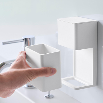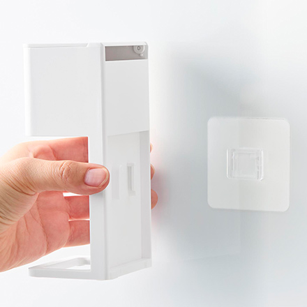 | サイズ/寸法 | 本体:約幅7.9×奥行5.9×高さ15cm(フィルムフック含まず) 蓋開口時:約高さ19.9cm 容器:約幅7.9×奥行4.8×高さ8.4cm フィルムフック接着面:約幅6×高さ6cm |