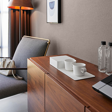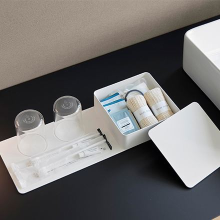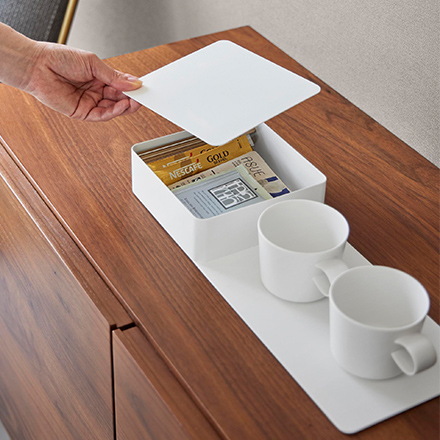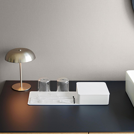 様々な場所でホテルライクを演出するスタイリッシュなデザインの収納ボックス付きトレー
