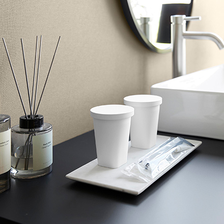 洗面所のアメニティにぴったりのシンプルで清潔感のあるデザイン。