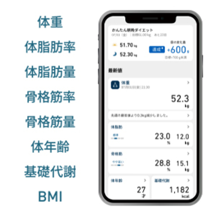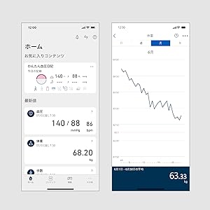 また、グラフ表示でカラダの傾向や目標との差をひと目で把握できます。