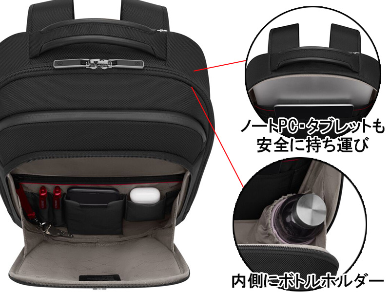 大切なノートPCやタブレットも安全に持ち運び可能です。