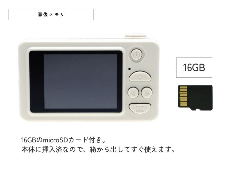 16GBの MicroSDが挿入済で、充電したらすぐにご使用頂けます。
