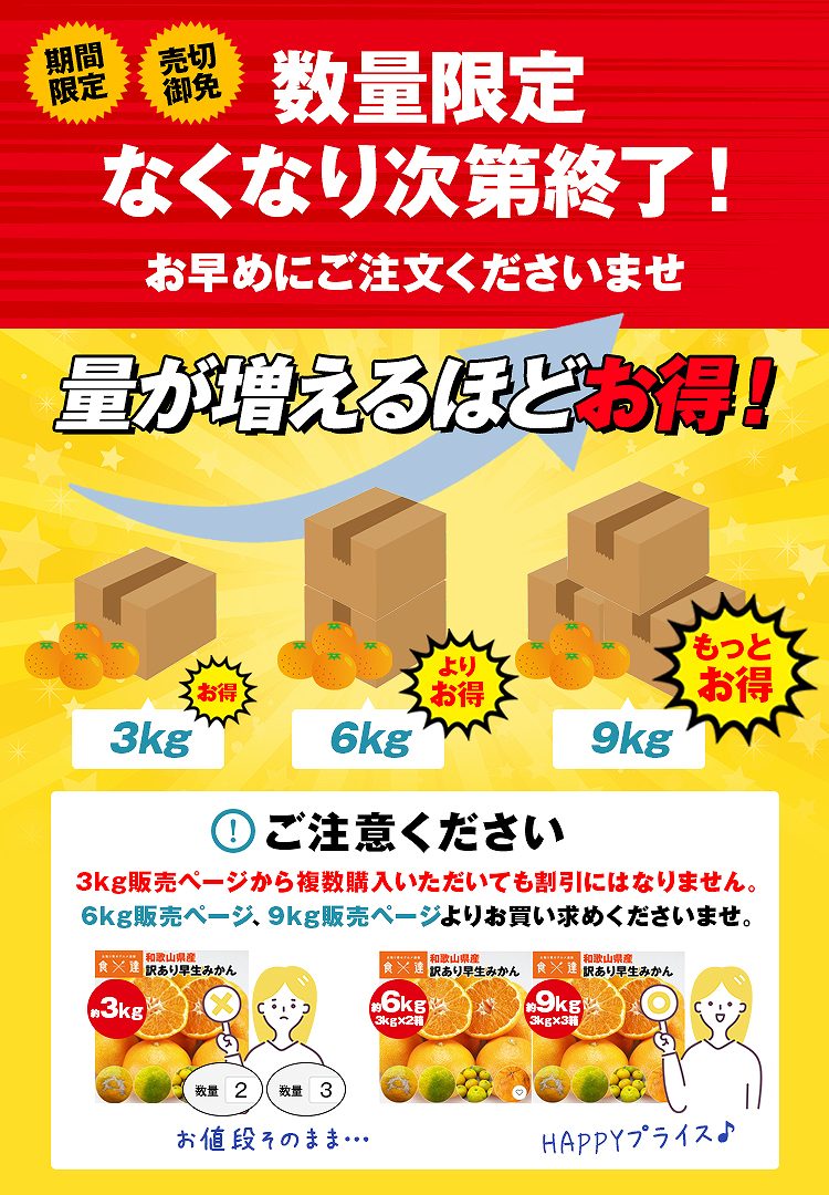 訳あり みかん 6.3kg (6kg+保証分300g程度) 3kgx2箱セット 和歌山県産 早生みかん 温州みかん ミカン 蜜柑 柑橘 わけあり 常温便 同梱不可 指定日不可