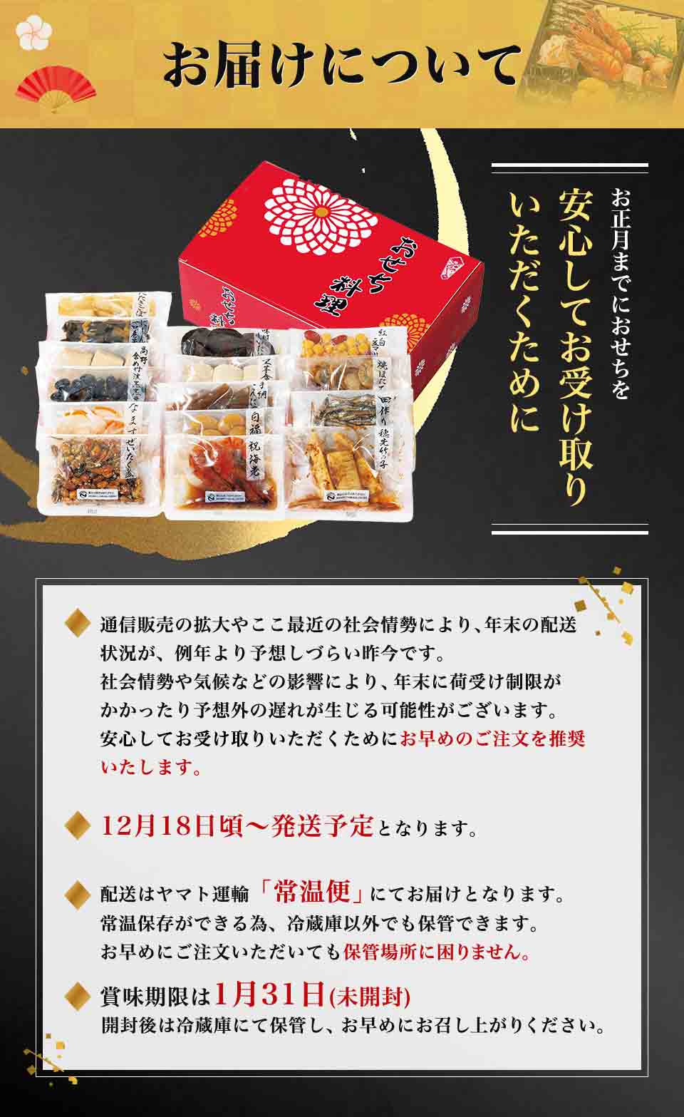 他の商品もおせちの発送時期の対応になってしまいますので、ご注文は分けてご利用ください。
