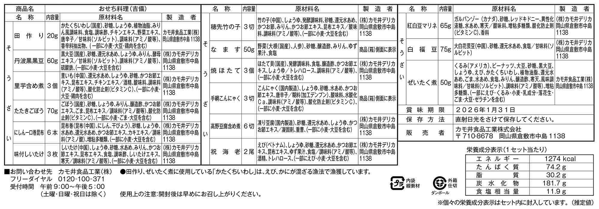 | メーカー/製造者 | 老舗鴨井本舗おせち |