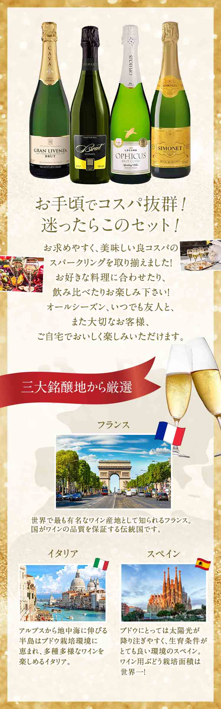 スパークリングワイン 4本 750ml×4 飲み比べセット
