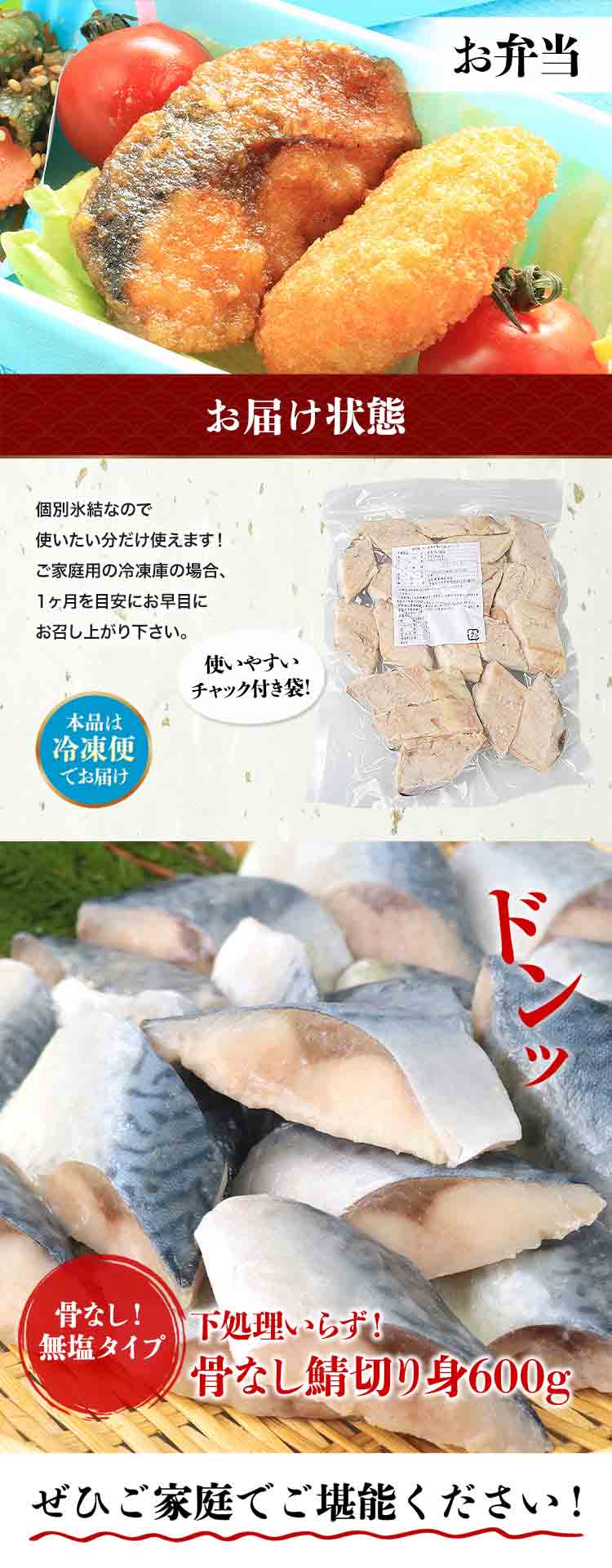 さば 骨取り 無塩 切り身 600g(30g×20切) 冷凍 骨なし 鯖 サバ