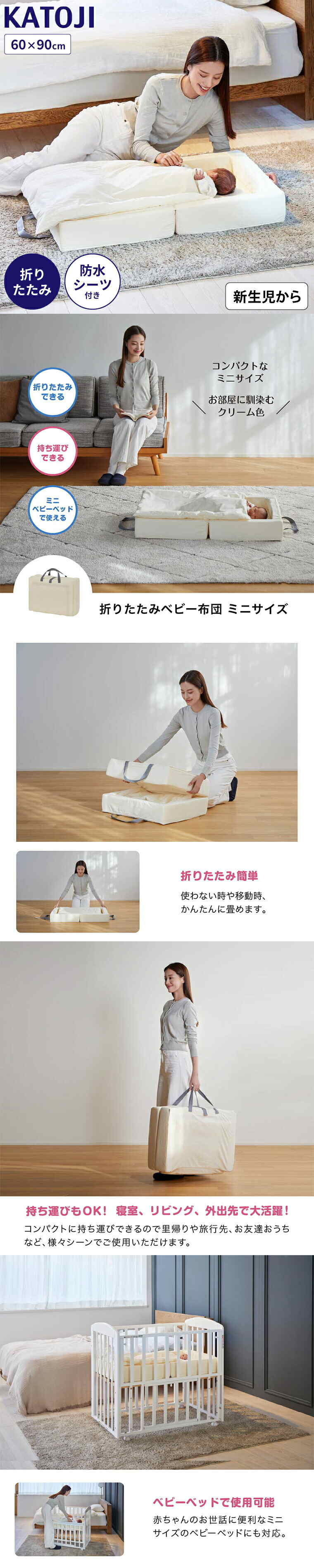 カトージ ベビー布団セット ミニサイズ(敷き布団 フィットシーツ 防水パッド 掛け布団 カバー 収納バッグ)