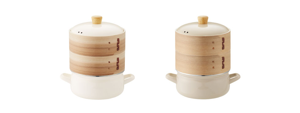 ホーロー製の両手鍋は表面がガラス質で、汚れが落ちやすく匂いがつきにくいのが特徴。色移りもしないので、見た目もいつまでも衛生的に保てます。せいろは、お湯で湿らせた布で拭くだけ。油汚れはぬるま湯でサッと洗い、風通しのいい場所で乾燥させます。