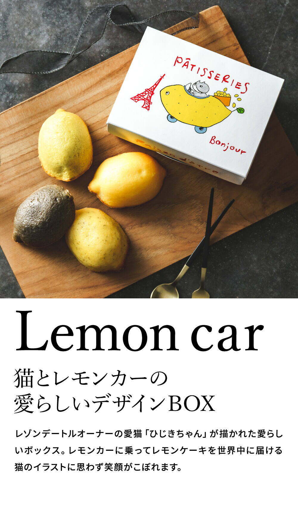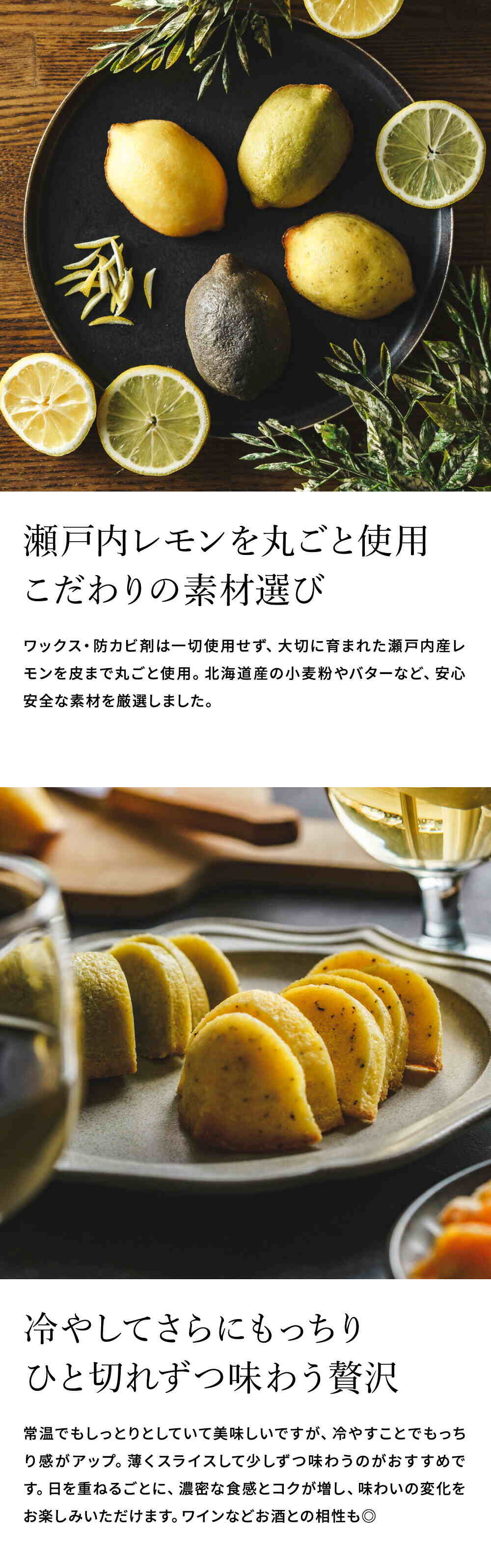 | 原材料/素材/材質 | ・レモンケーキ:砂糖(国内製造)、卵、バター、小麦粉、乳又は乳成分を主要原料とする食品、レモンコンフィチュール/乳化剤、香料、メタリン酸Na、ゲル化剤(ペクチン)・アールグレイレモンケーキ: 砂糖(国内製造)、卵、バター、小麦粉、乳又は乳成分を主要原料とする食品、レモンコンフィチュール、アールグレイ茶葉/乳化剤、香料、メタリン酸Na、ゲル化剤(ペクチン)・カカオレモンケーキ: 砂糖(国内製造)、卵、バター、小麦粉、乳又は乳成分を主要原料とする食品、レモンコンフィチュール、ココアパウダー/乳化剤、香料、メタリン酸Na、ゲル化剤(ペクチン)・抹茶レモンケーキ: 砂糖(国内製造)、卵、バター、小麦粉、乳又は乳成分を主要原料とする食品、レモンコンフィチュール、抹茶/乳化剤、香料、メタリン酸Na、ゲル化剤(ペクチン) |