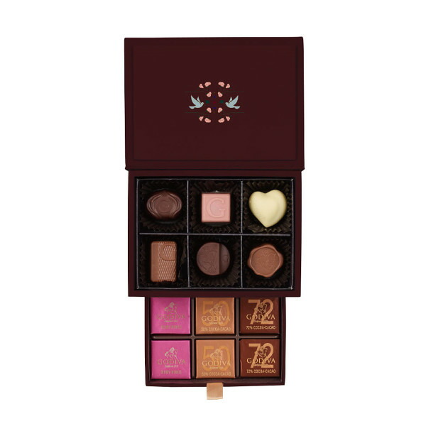 お祝いのプレゼントや内祝いはもちろん、大人数への手土産や職場へのギフトにもおすすめです。もちろん自分へのご褒美にも。ゴディバの高級感あるロゴが輝くギフトボックスに入れてお届けします。