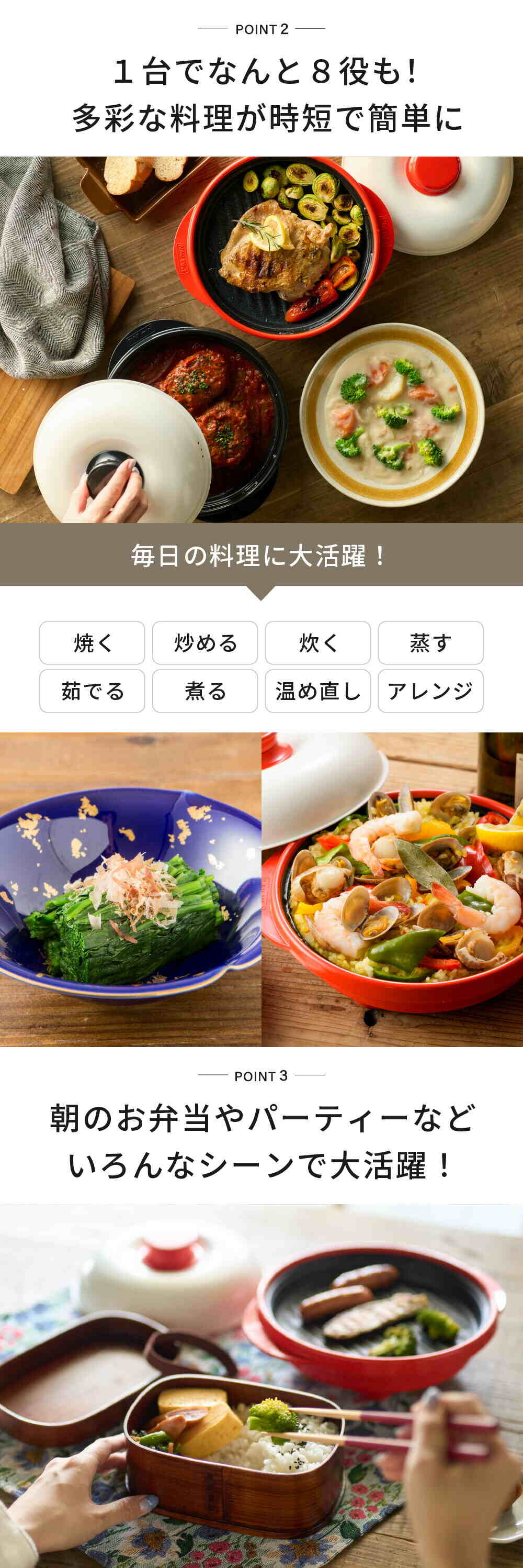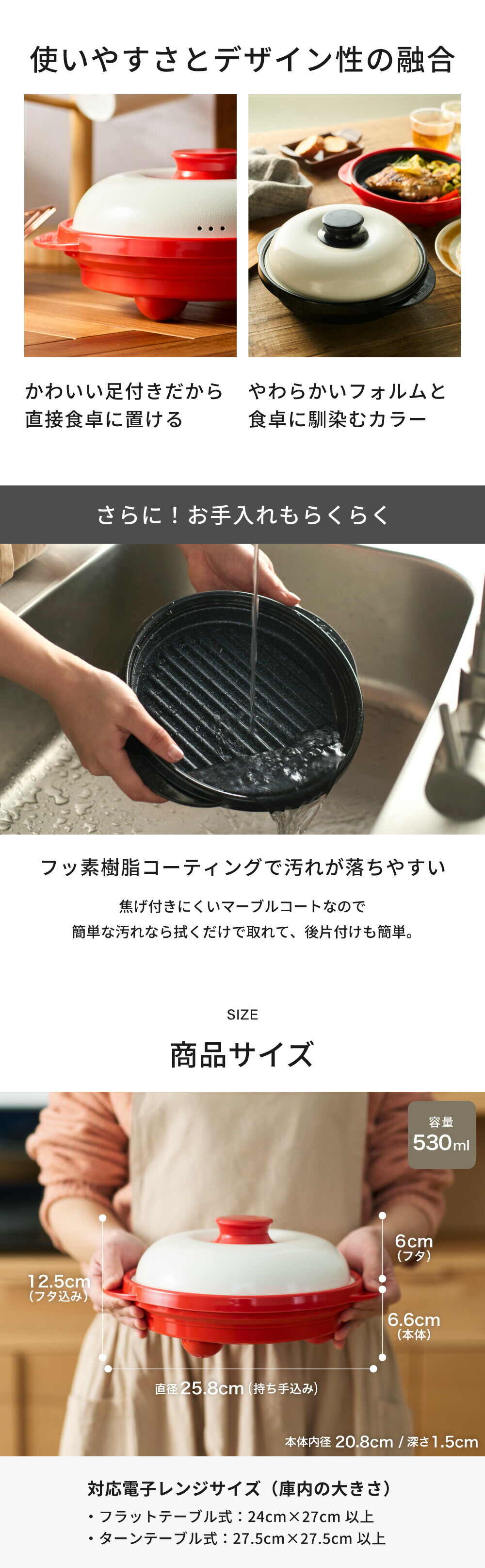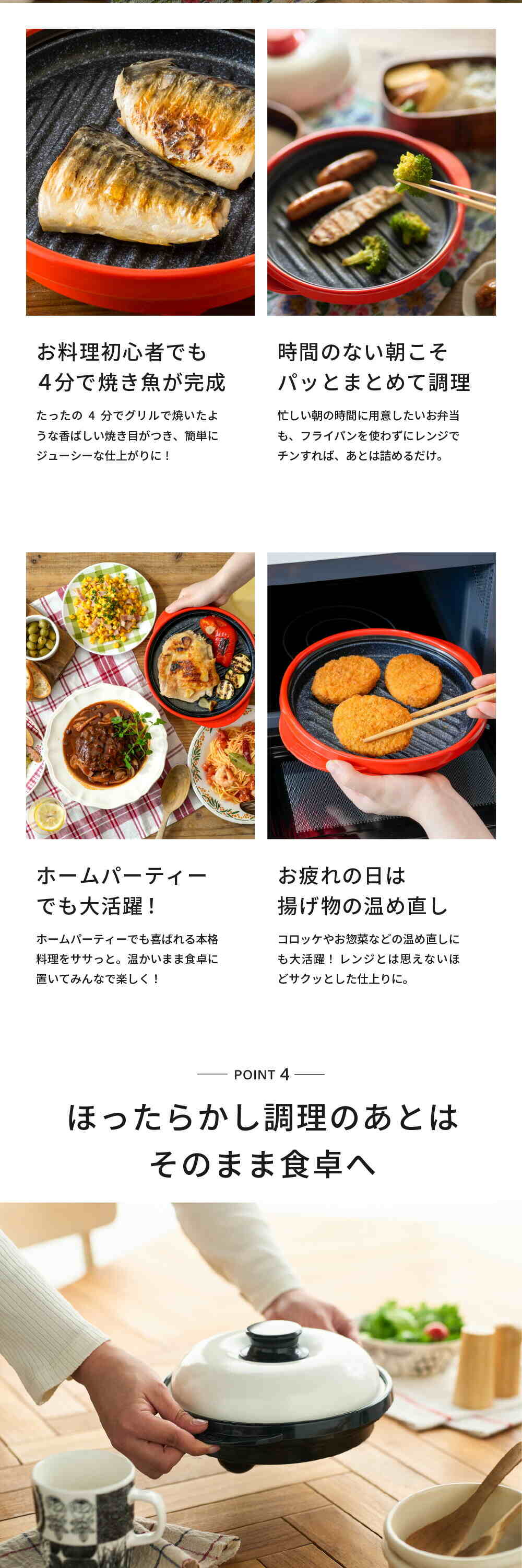 | その他詳細 2 | ※水洗いの際、本体底部の穴が水没しないようご注意ください。つけ置き洗いをしないでください。底部の穴から水が浸水した場合、鉄板の温度が上昇しにくくなり、調理ができなります。 ※自動食器洗浄機、また食器乾燥機は使用できません。 ※外箱のデザインは変更となる場合がございます。 |