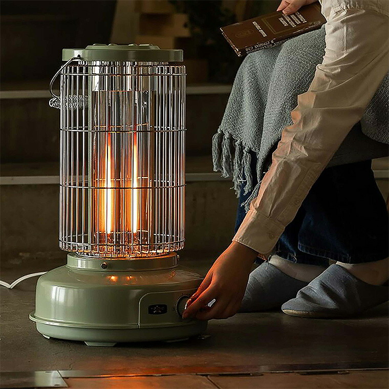 ・わずか0.2秒で暖まる!伝統の石油ストーブ「ブルーフレーム」型の全く新しい電気ストーブ「グラファイトフレームヒーター」。