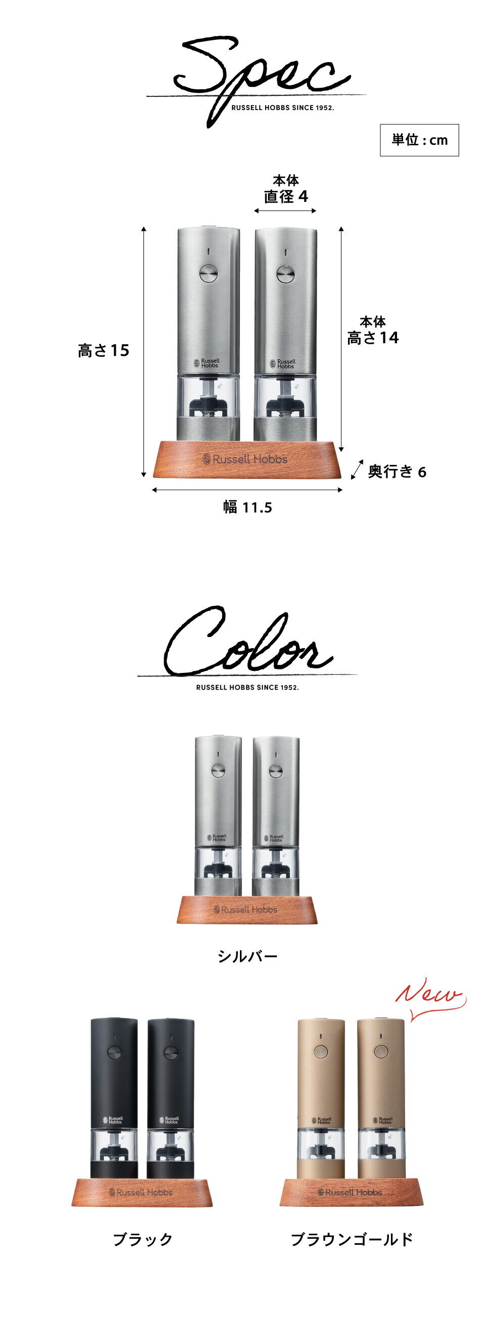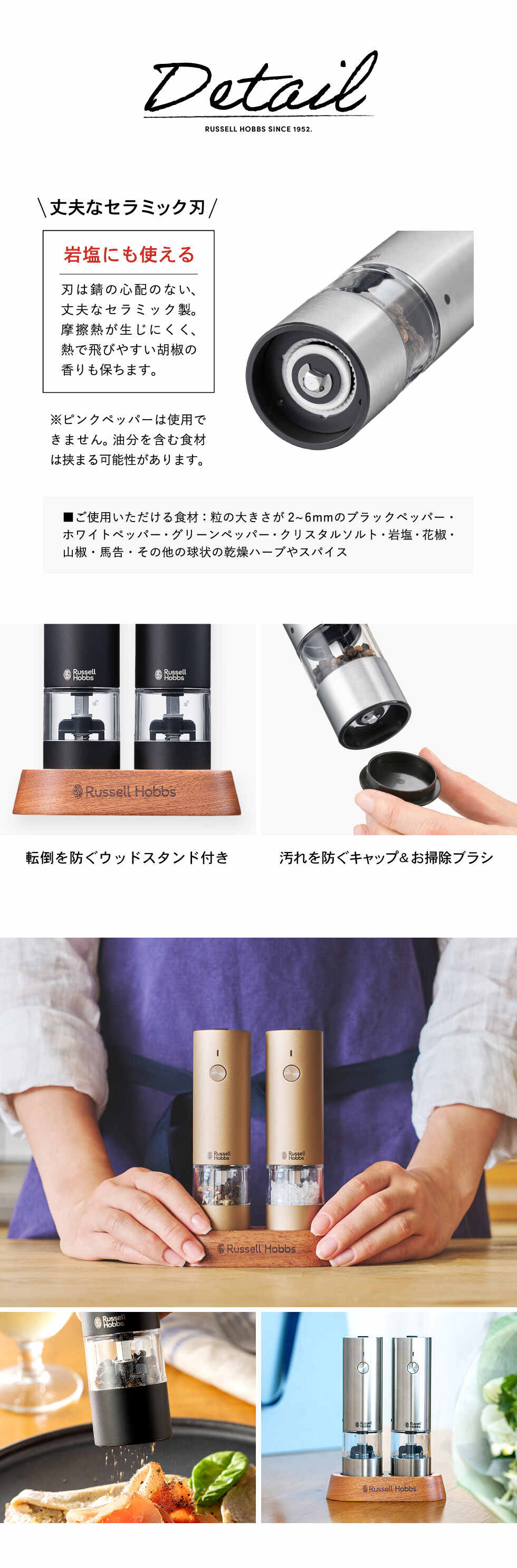 ラッセルホブス Russell Hobbs 電動ミル 充電式ミル ソルト&ペッパー ミニ 2本セット ブラウンゴールド 7942JP