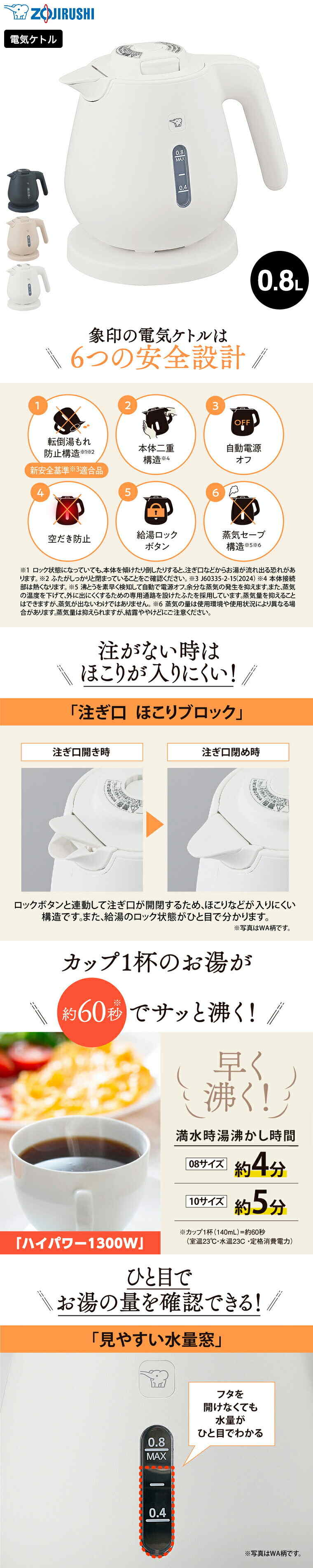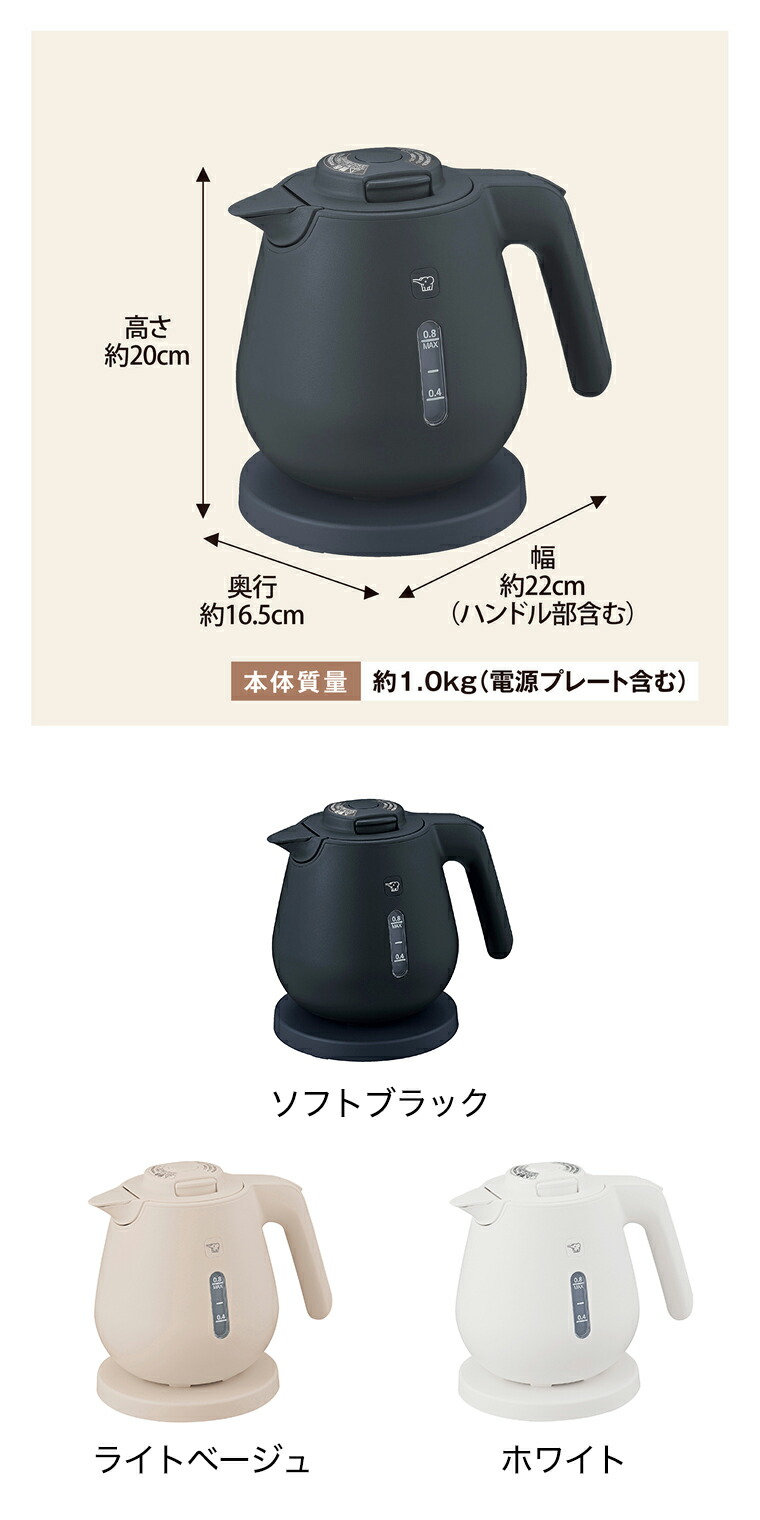象印 電気ケトル 0.8L ライトベージュ CK-DC08 / 転倒お湯もれ防止 本体二重構造 蒸気レス ほこりブロック 空だき防止 電気ポット
