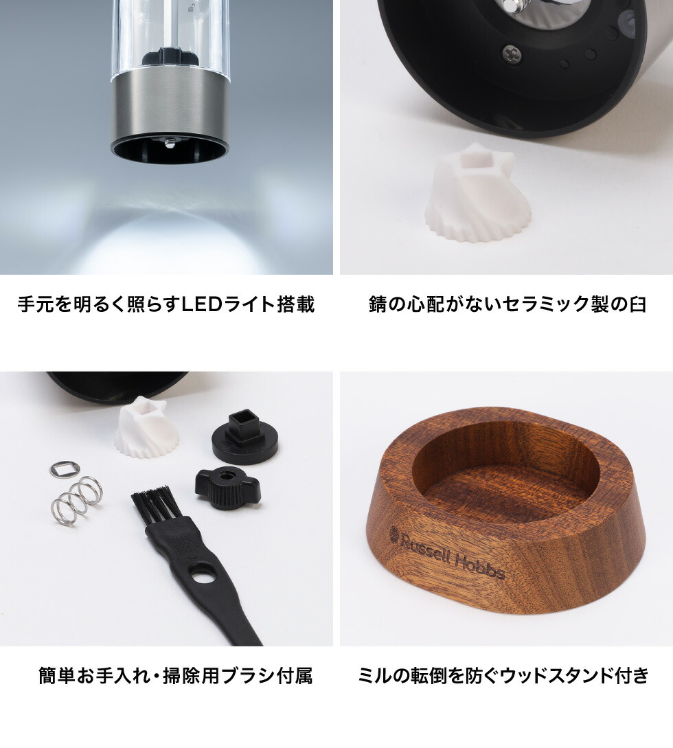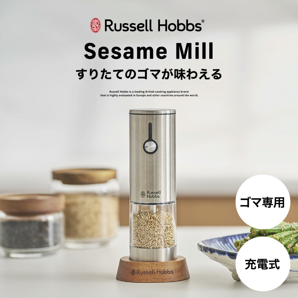 ラッセルホブス Russell Hobbs 充電式ゴマミル 7950JP / 電動 自動 すりごま ウッドスタンド付き USB充電 ステンレス