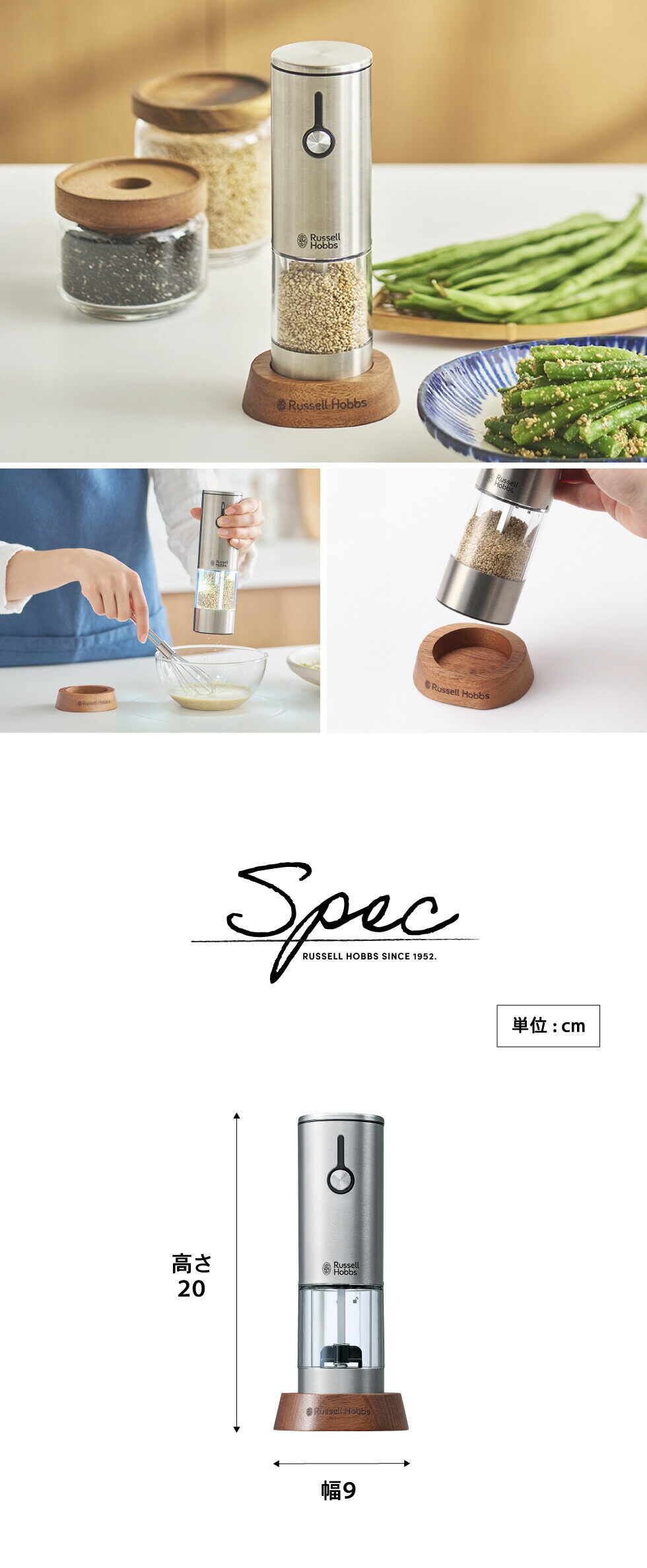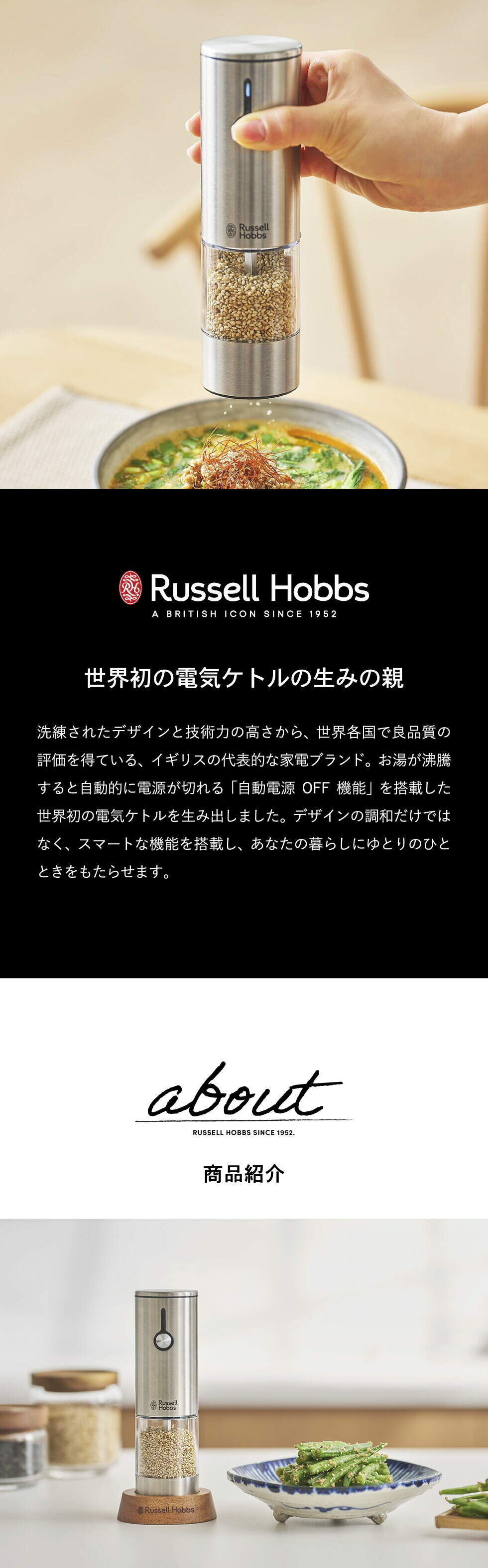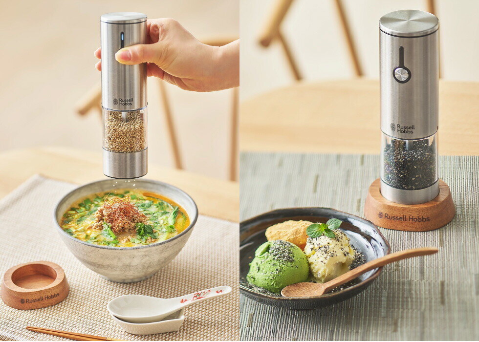 高い栄養効果が期待できるゴマですが、市販のすりゴマが主流で、すりたての良さはあまり知られていません。ラッセルホブスの電動ゴマミルなら、食べる直前に挽けて、香り高い風味とゴマ本来の旨味・栄養をしっかり楽しめます。