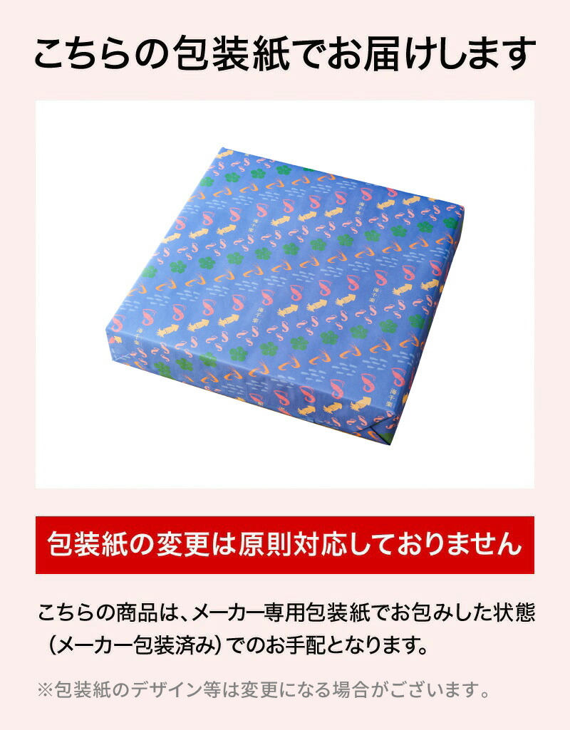 | 原材料/素材/材質 | もち米(国産)、もち粉(国産米)、植物油脂、食塩、糖類(ぶどう糖、砂糖、オリゴ糖)、えび、いか、青のり、甘えび(粉末)、えびエキスパウダー、えびパウダー、粉末醤油、香辛料/調味料(アミノ酸等)、紅麹色素、(一部えび・小麦・いか・大豆を含む) |