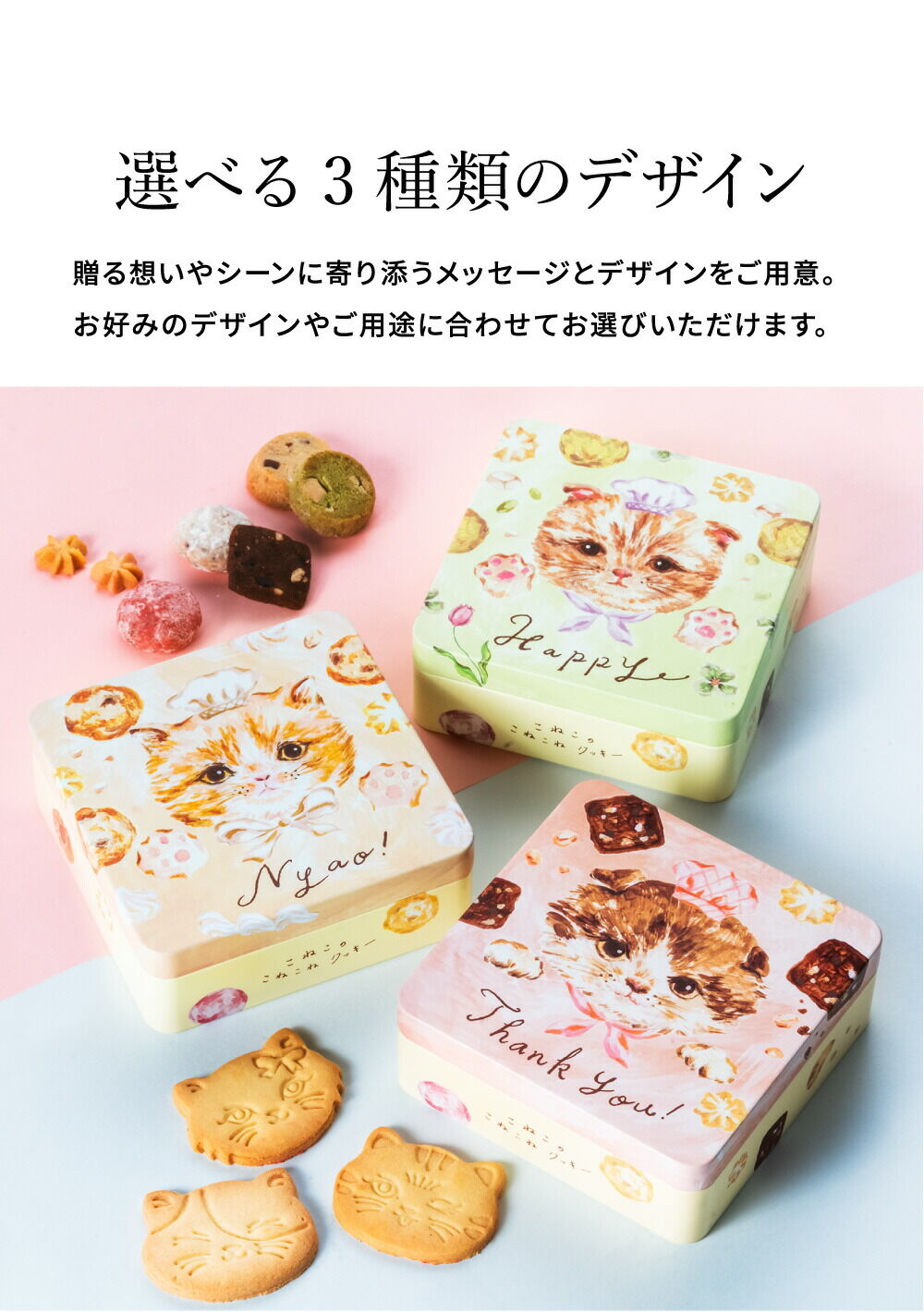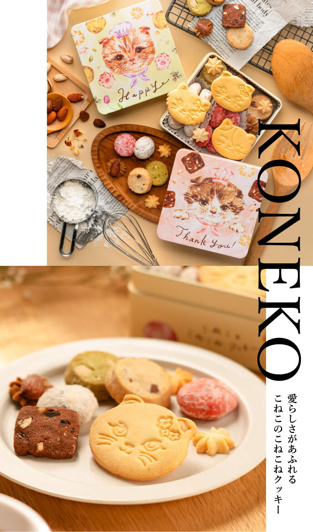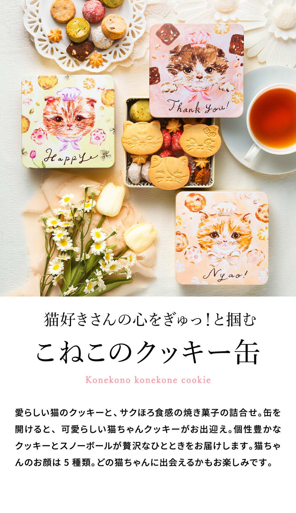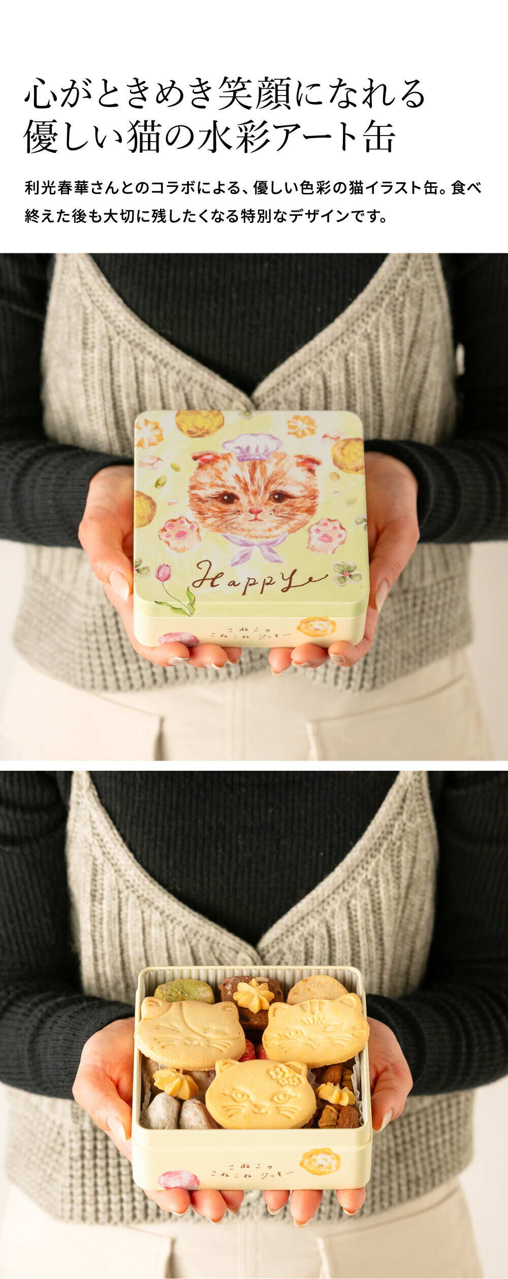 こねこのこねこねクッキー缶 Happy