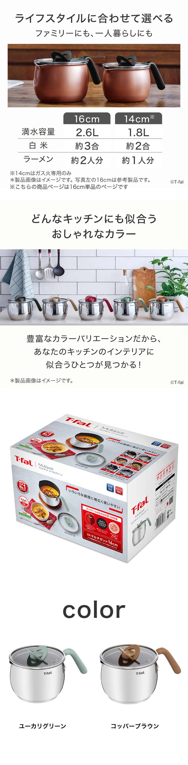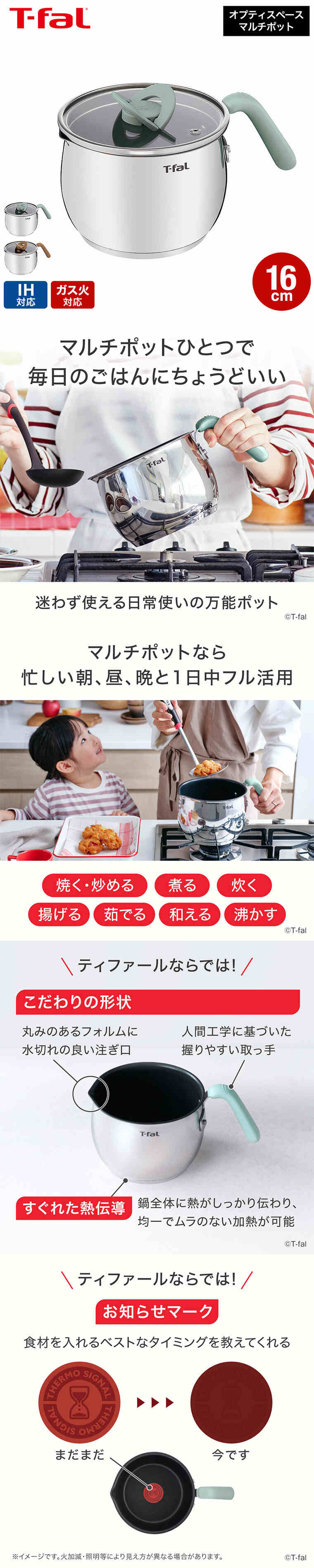T-fal オプティスペースIH ステンレス マルチポット G79017 G79117 16cm IH対応 ガス火対応 / ユーカリグリーン